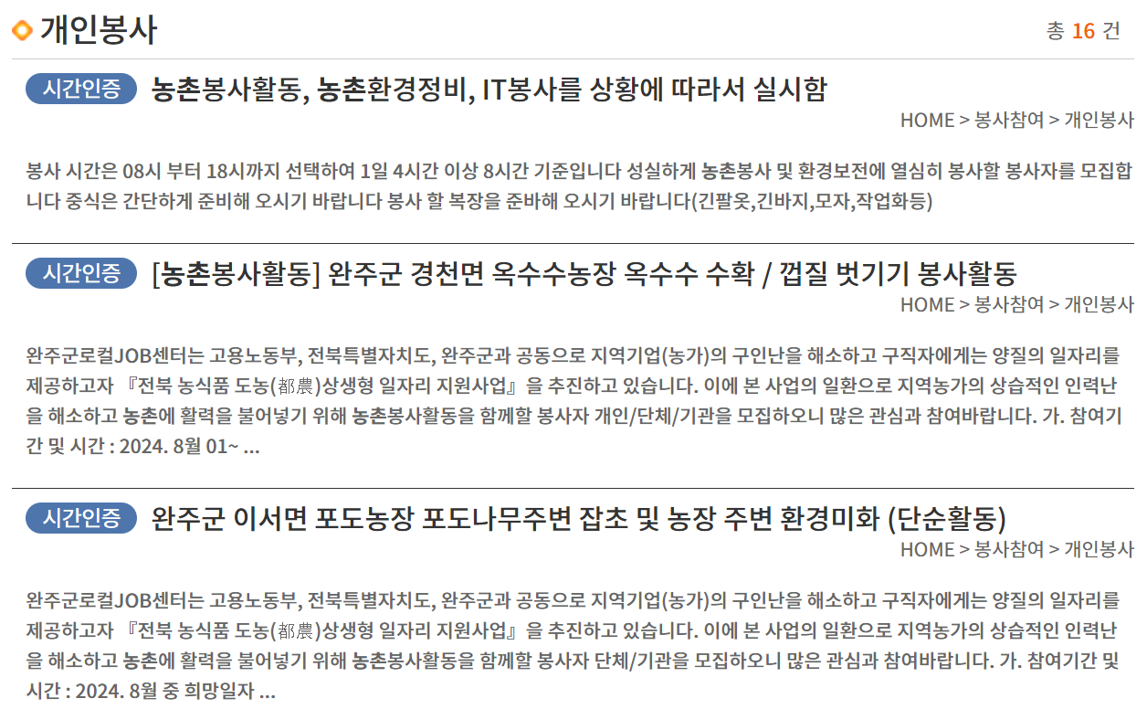 농촌봉사활동을 찾는 데 유용한 정보가 될 수 있습니다.