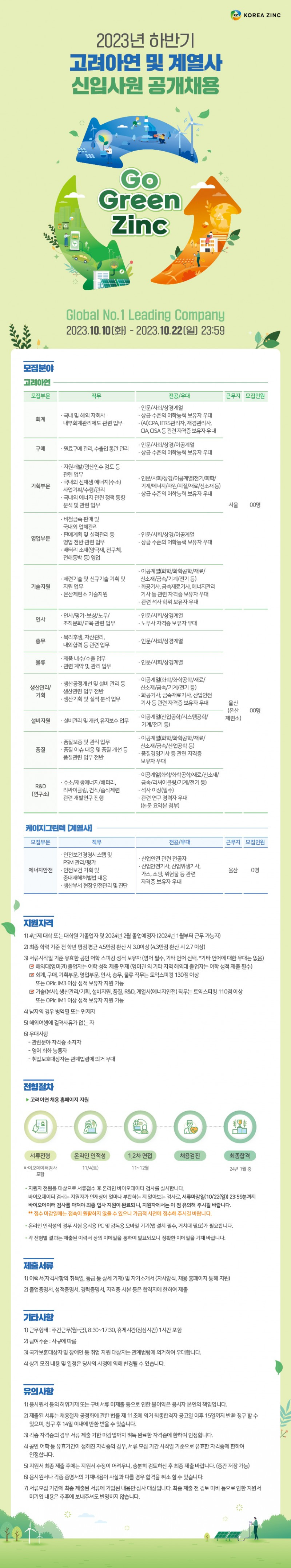 와 같이 "Go Green Zinc"라는 테마로 지속 가능성을 강조하는 채용 공고도 눈에 띕니다. 이러한 채용 공고는 매년 여러 차례 이루어지므로, 관심 있는 분들은 정기적으로 확인하는 것이 좋습니다.