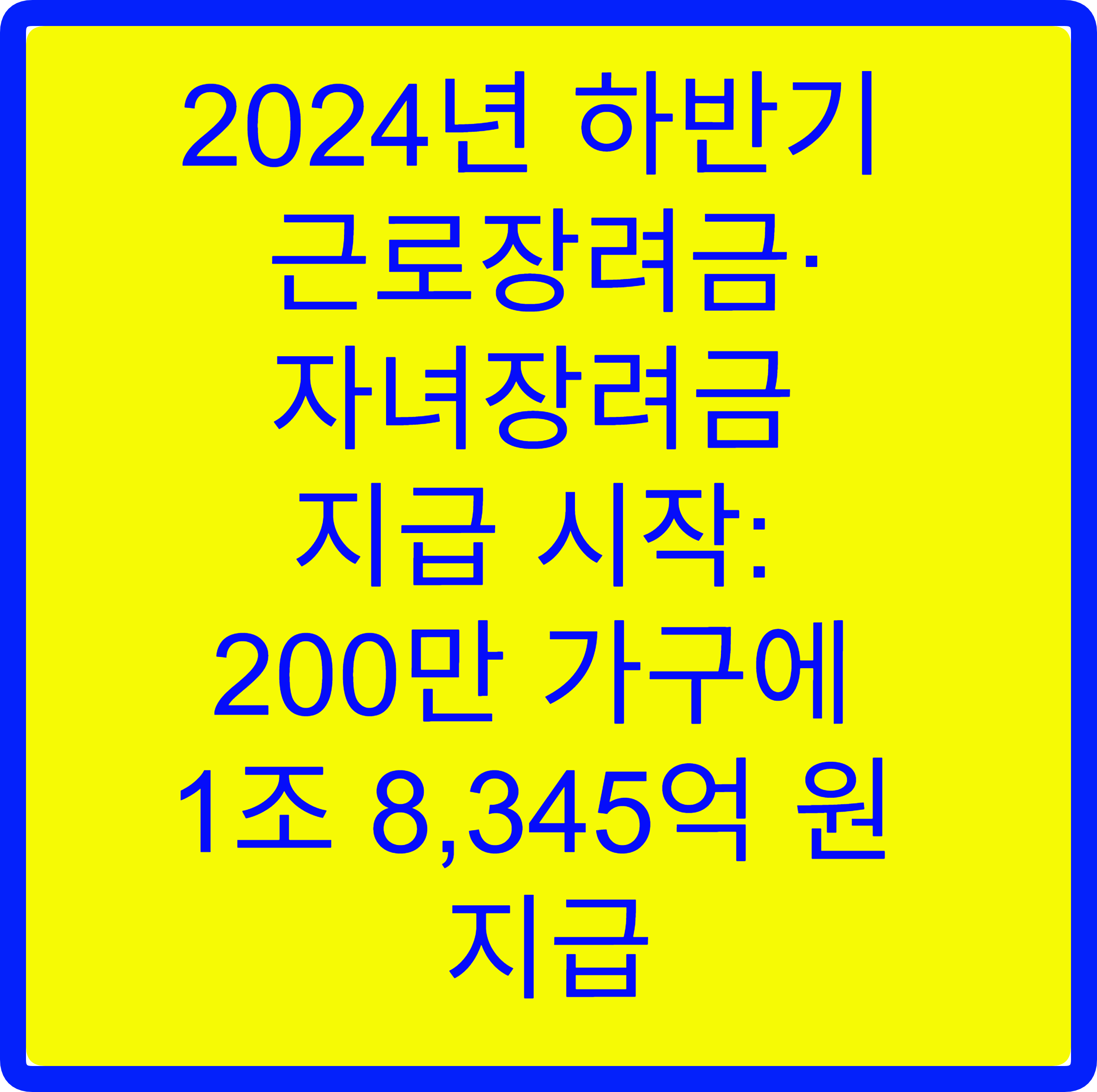오늘(6월 26일)부터 2024년 귀속 하반기분 근로·자녀장려금 지급이 본격적으로 시작됩니다. 이번 하반기분 장려금은 총 200만 가구를 대상으로 1조 8,345억 원이라는 막대한 규모로 지급되며, 이는 많은 가정에 경제적 도움을 제공할 예정입니다.
