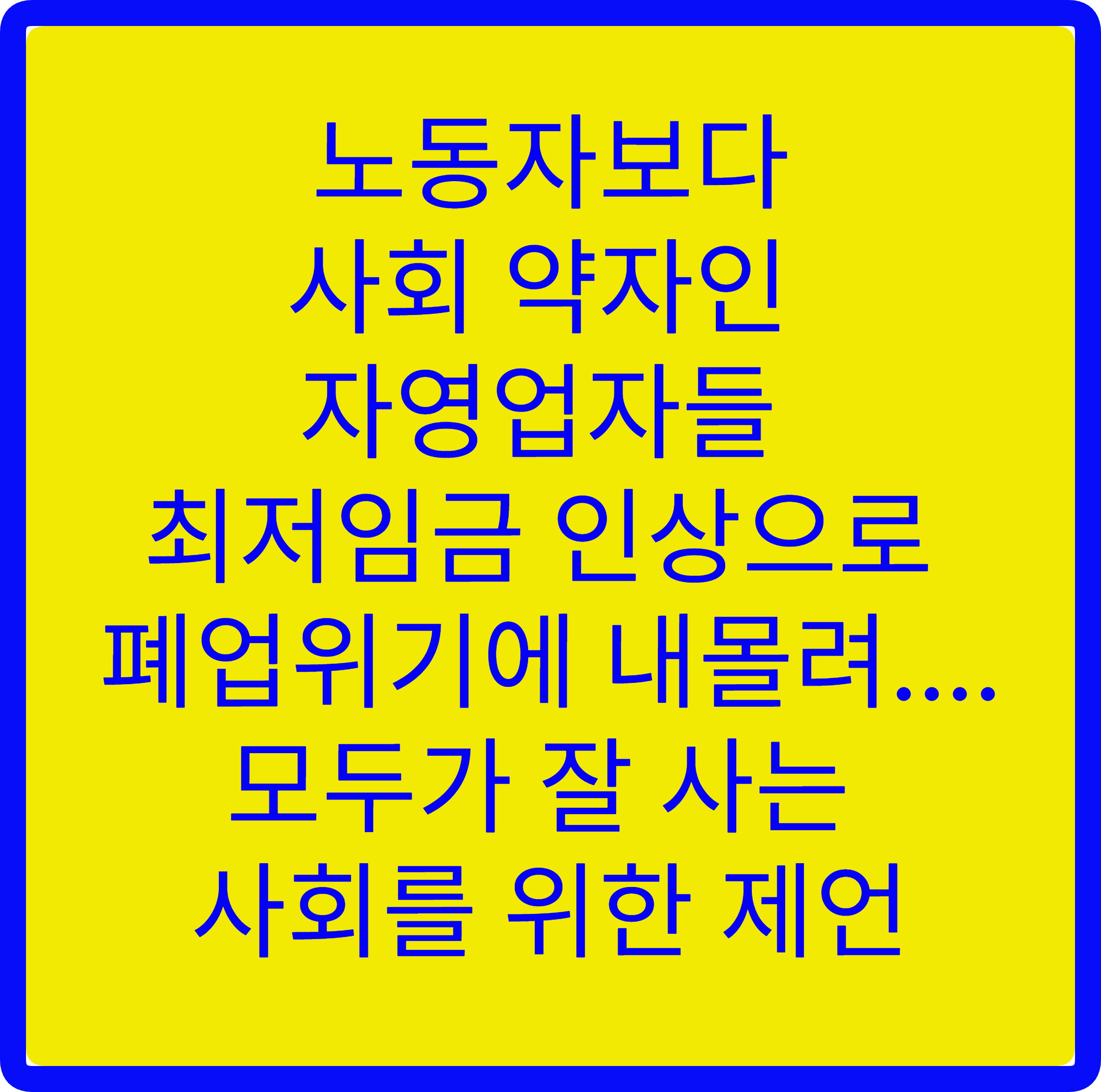 노동자보다 사회 약자인 자영업자들 최저임금 인상으로 폐업위기에 내몰려.... 모두가 잘 사는 사회를 위한 제언