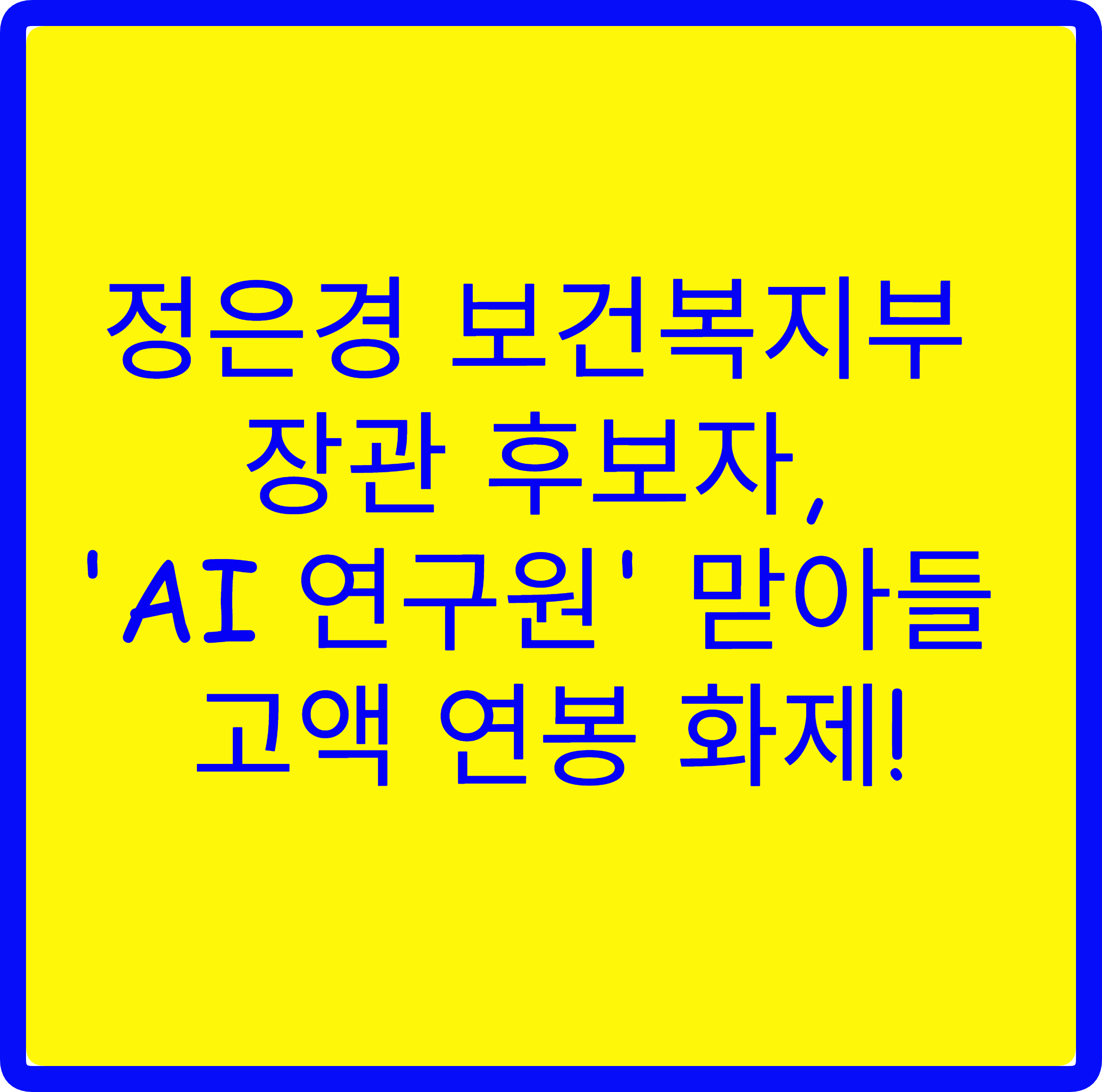 연관 키워드: 정은경 보건복지부 장관, 정은경 아들 AI 연구원, 정은경 아들 인공지능 전문가, 정은경 아들 KAIST, 카이스트, 전문연구요원, 이공계 인재, 고액 연봉, 미래 유망 직업, 포항공대, 질병관리청장, 보건복지부 장관 후보자, 인사청문회, 대기업 AI, 직업의 미래, 이공계 기피 해소, 과학기술 인재, 4차 산업혁명, AI 산업 성장