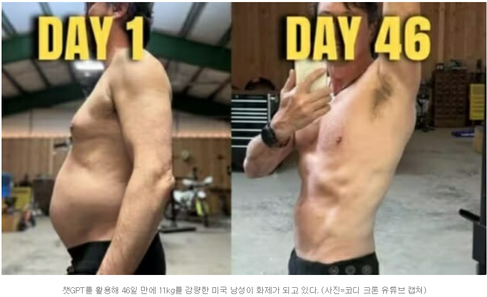 개인 트레이너 없이 챗GPT로 46일 만에 11kg 감량! 미국 유튜버의 놀라운 다이어트 성공 비법