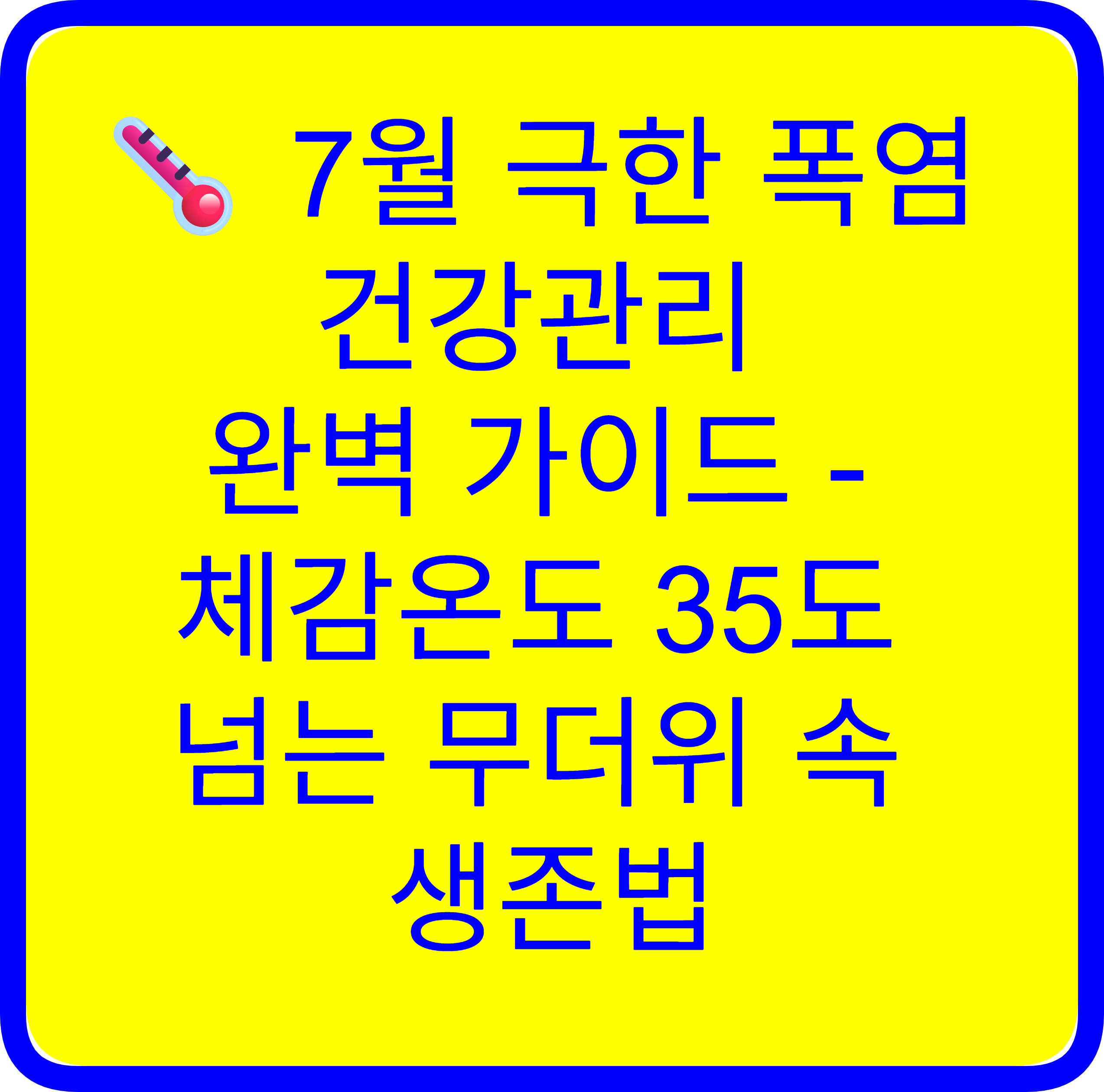 🌡️ 7월 극한 폭염 건강관리 완벽 가이드 - 체감온도 35도 넘는 무더위 속 생존법