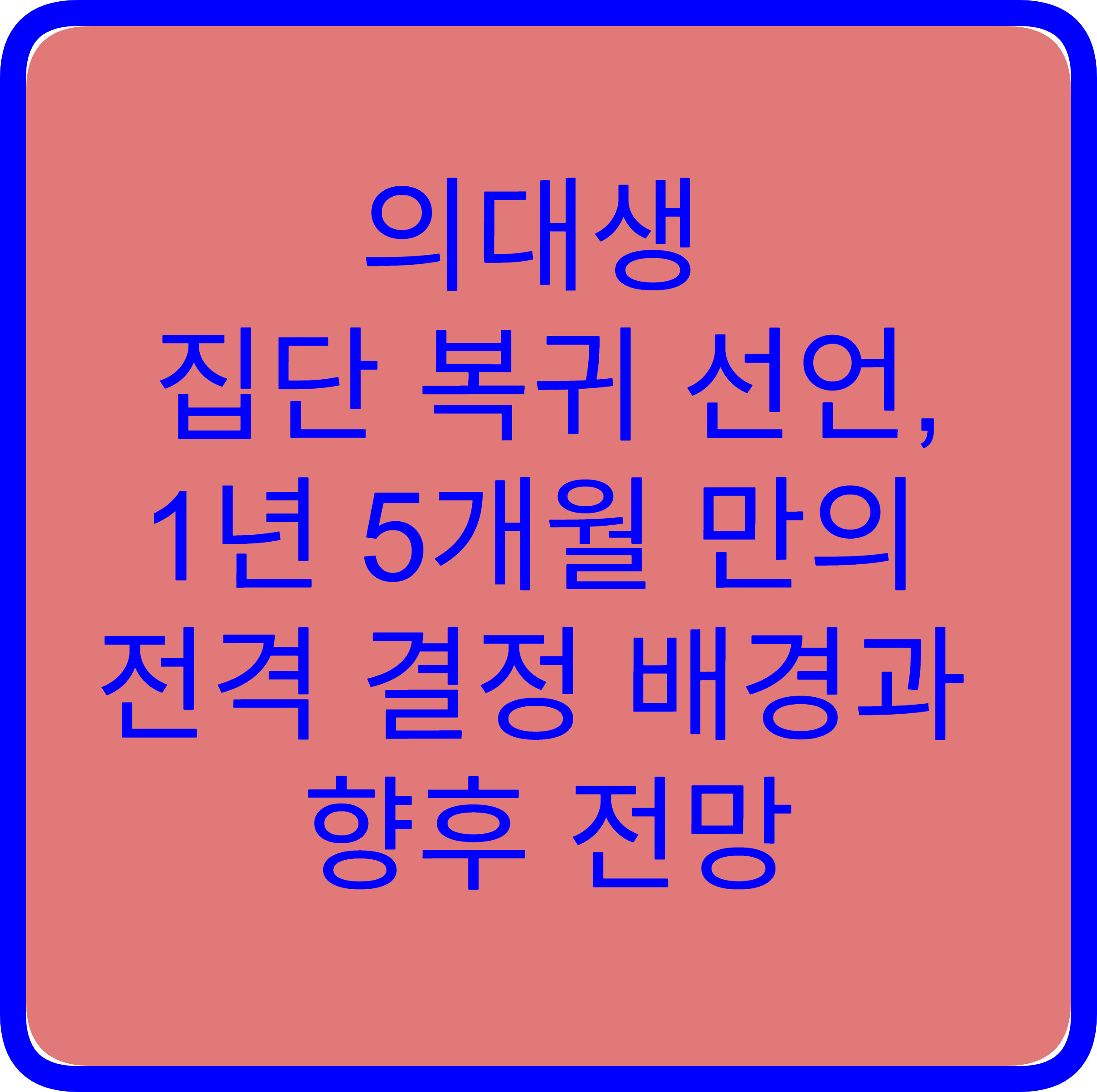 의대생 집단 복귀 선언, 1년 5개월 만의 전격 결정 배경과 향후 전망