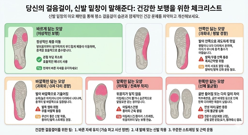 신발 밑창 마모 패턴으로 알아보는 보행 습관과 관절 건강 — 당신의 걸음걸이는 안전한가요?