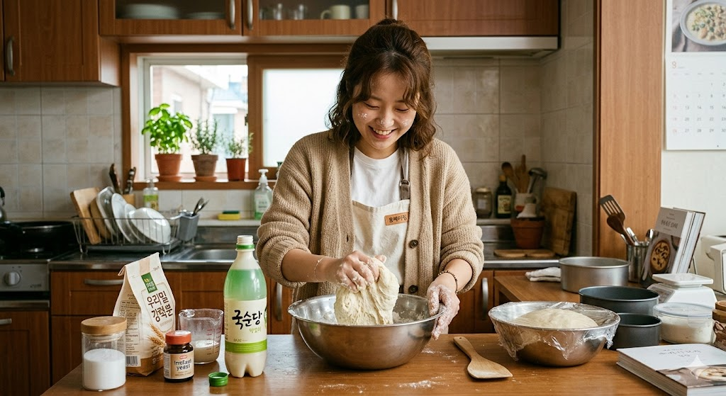 막걸리로 집에서 빵 만들기 — 이스트 없이도 폭신하고 구수한 빵이 완성됩니다